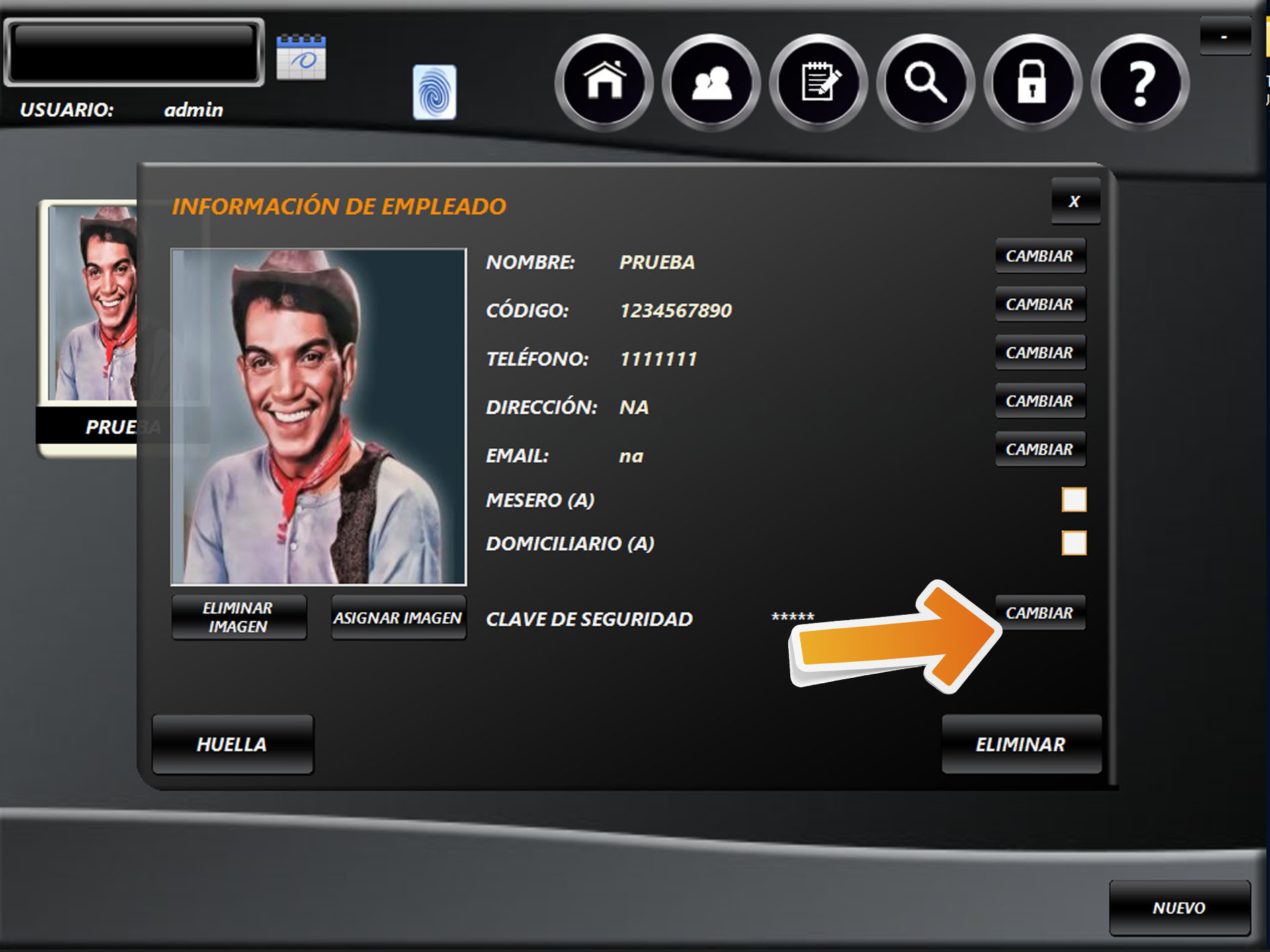Para asignar una clave de seguridad a un empleado, ingrese al módulo de EMPLEADOS.