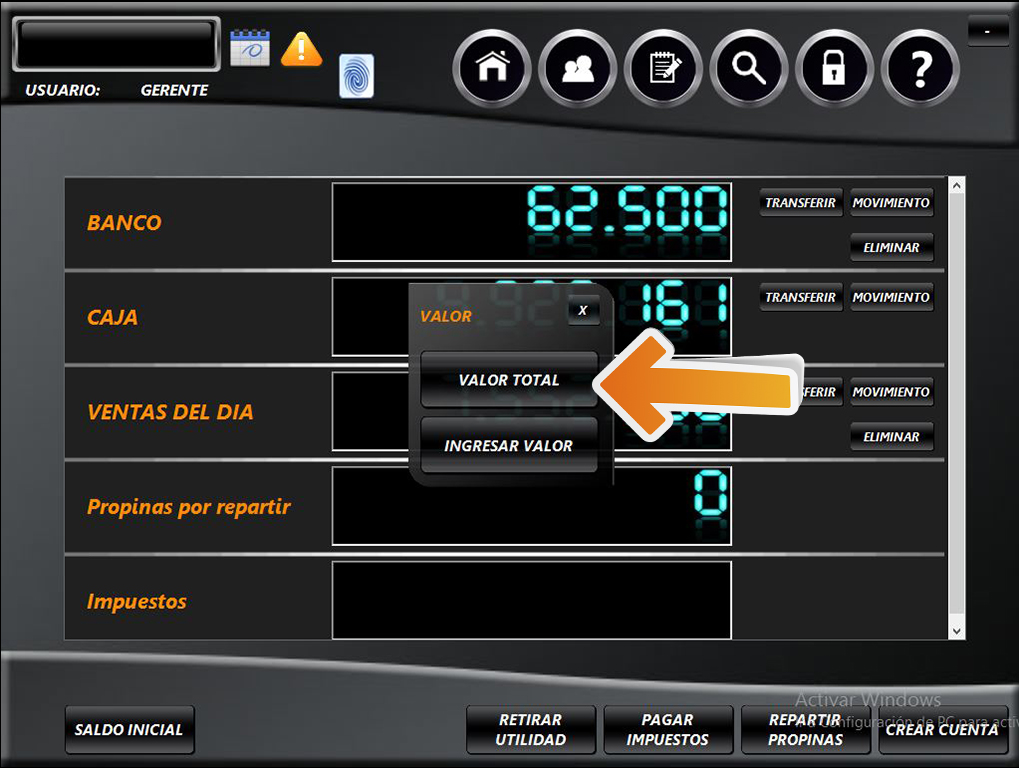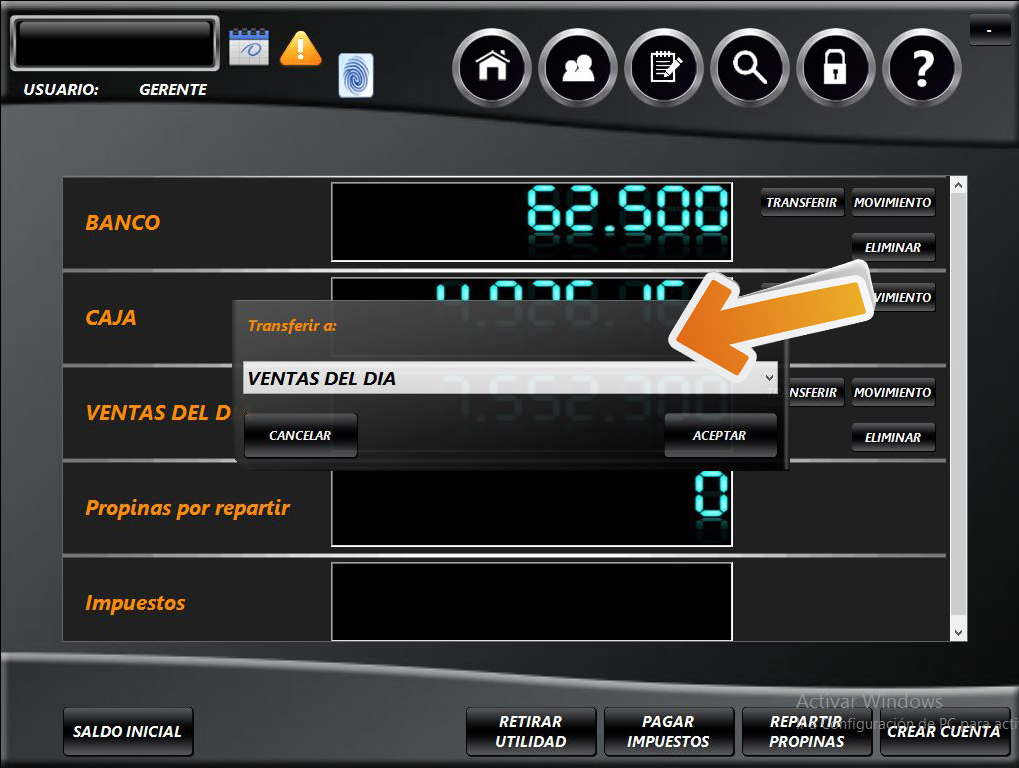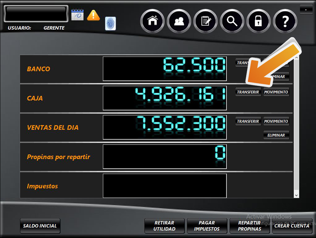 Para realizar una transferencia de dinero de una cuenta, ingrese al módulo CAJA.