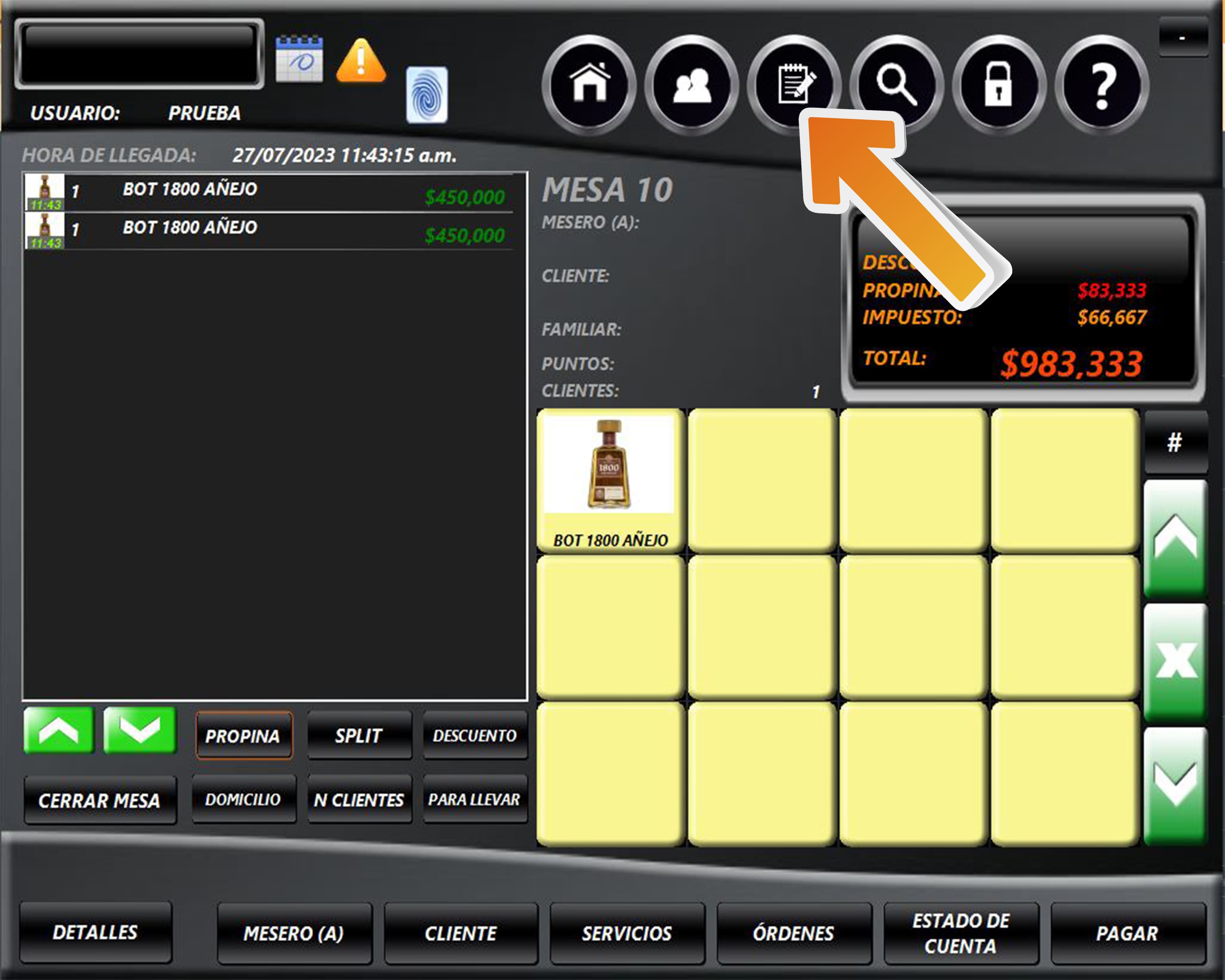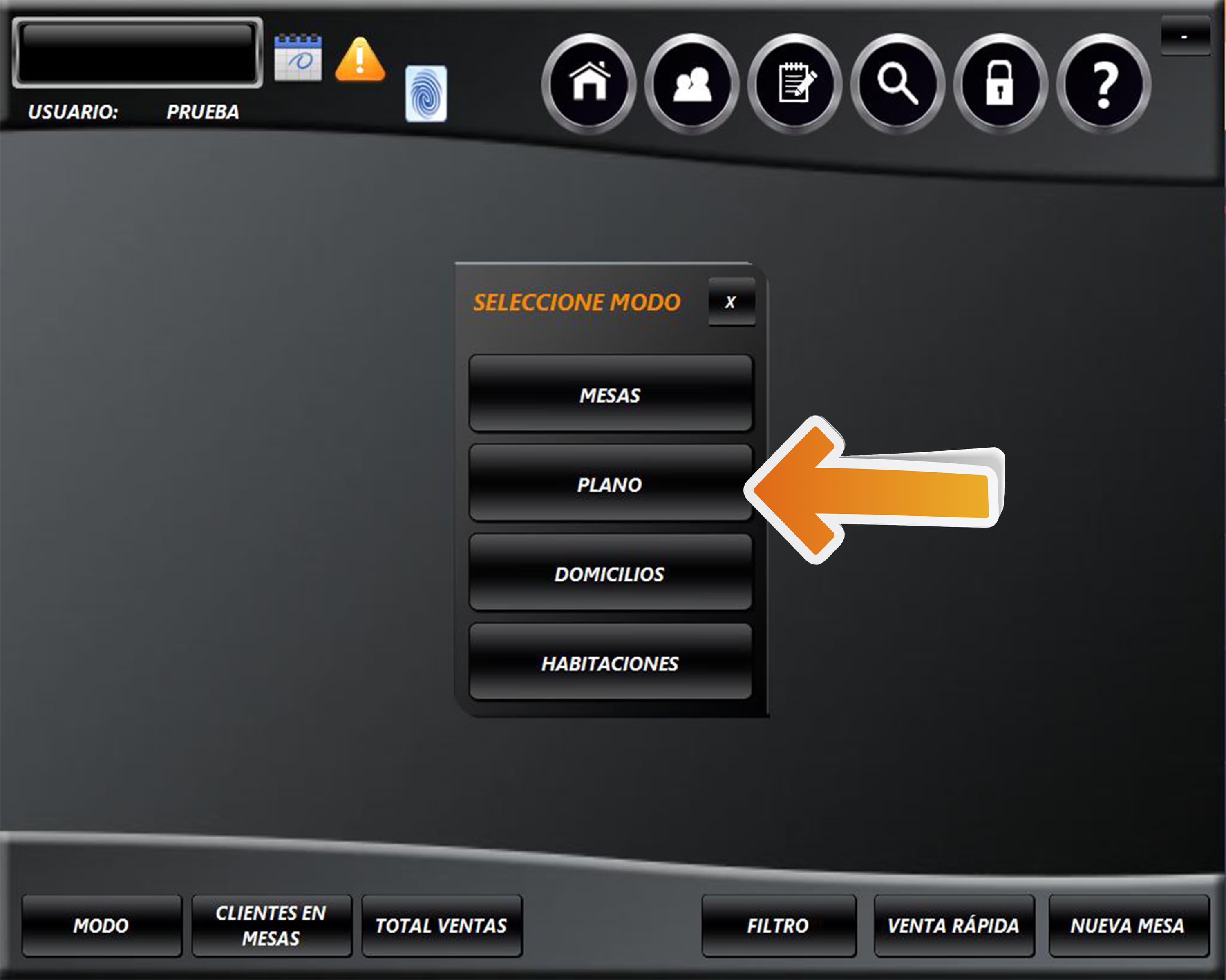 Se visualizará el plano de mesa. Seleccione la mesa donde se encuentra el cliente.