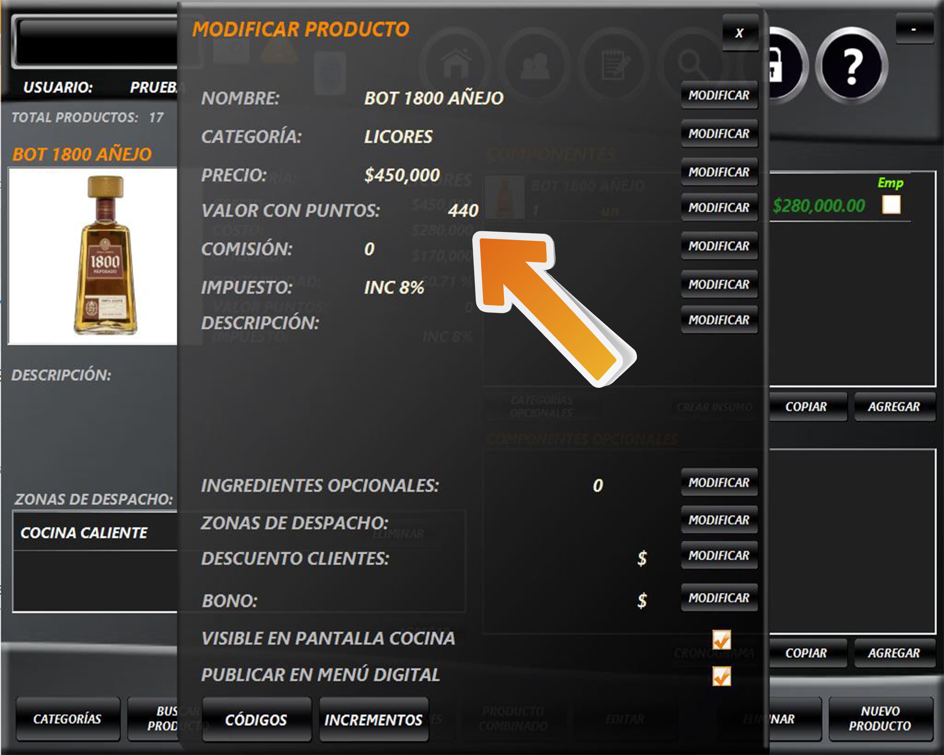 Para asignar valor por puntos a una producto ingrese al módulo MENÚ.
