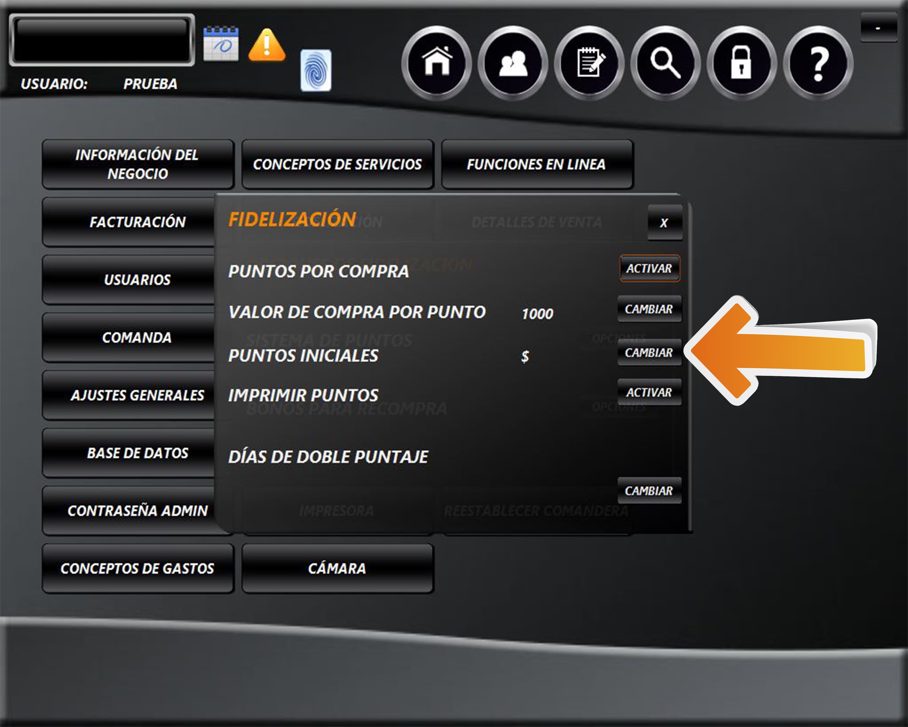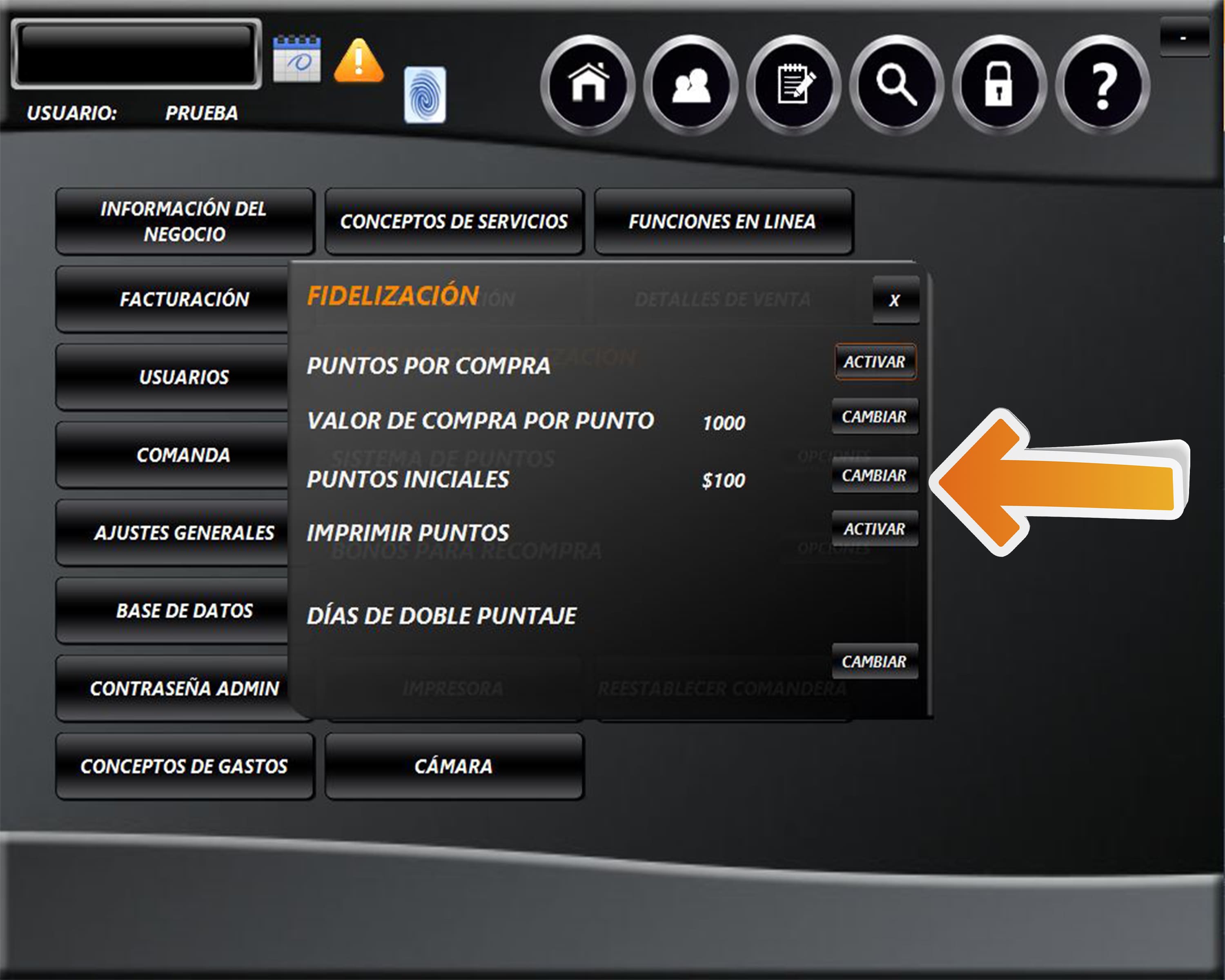 Para asignarle puntos iniciales a un cliente, ingrese al módulo CONFIGURACIÓN.