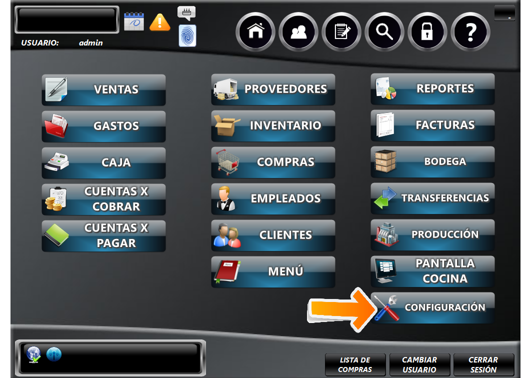 En el inicio de Sumapos, damos clic al módulo de "Configuración".