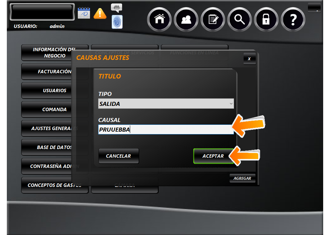En causal escribimos el motivo, nombre o título. Y después de escribir el nombre, le damos clic al botón de "Aceptar".