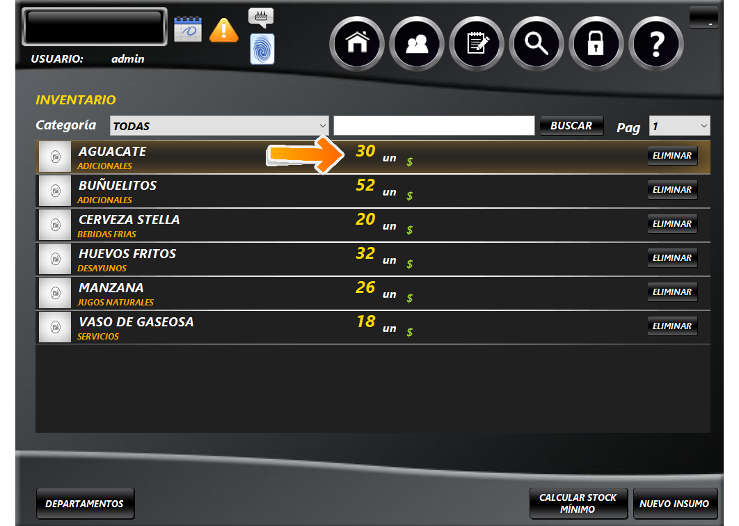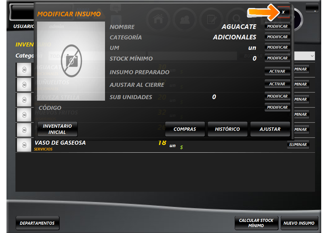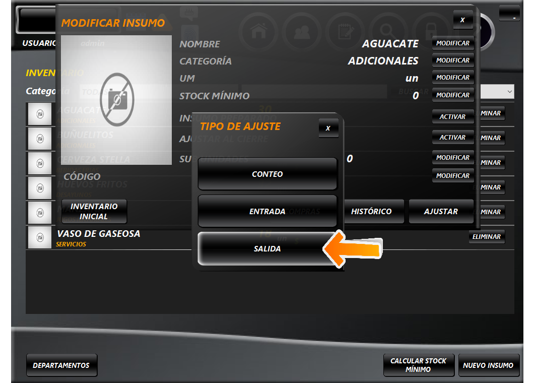 Ahora damos clic en el insumo al que le haremos un ajuste.