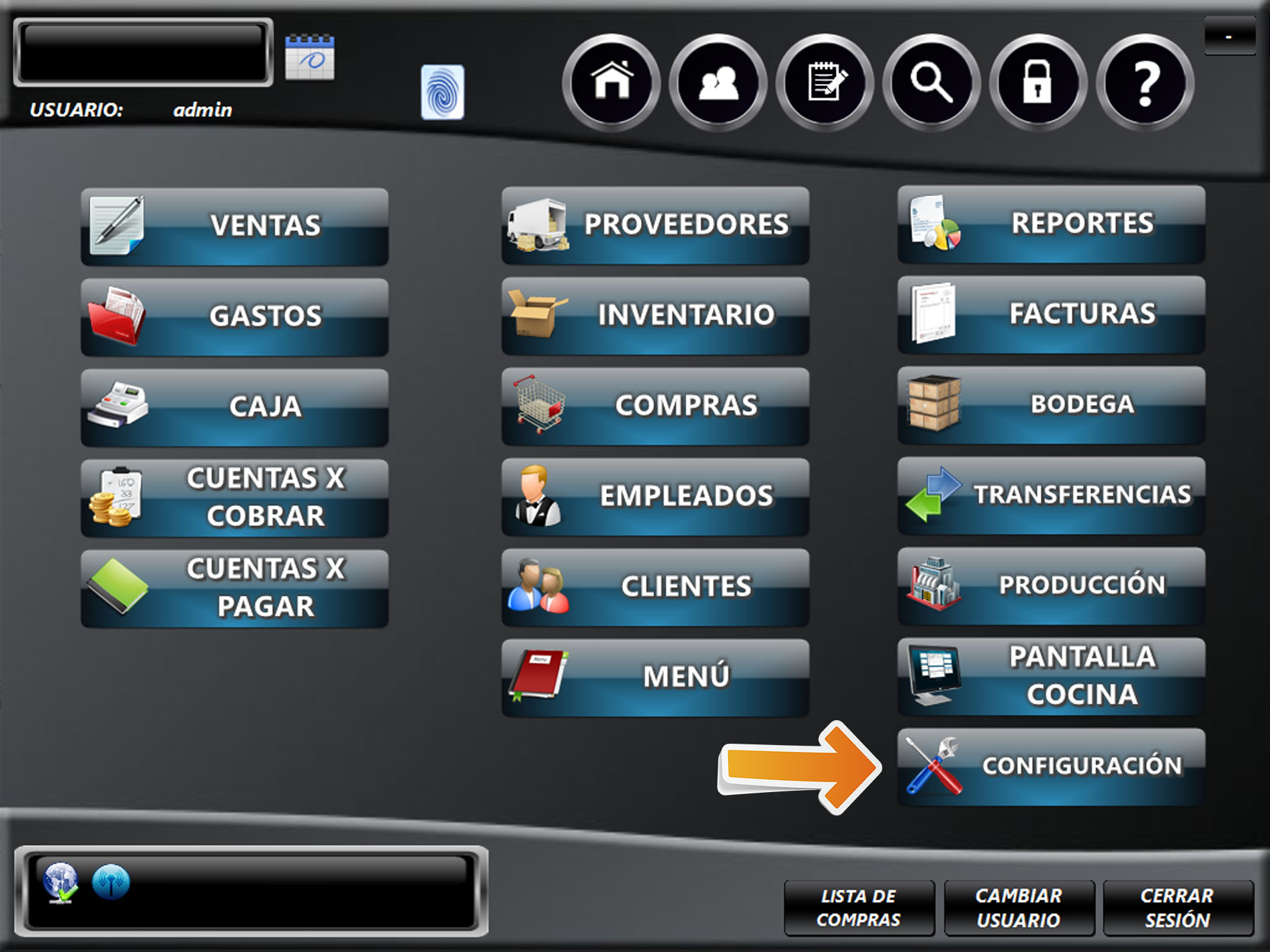 Para configurar el porcentaje de propina, ingrese al módulo CONFIGURACIÓN.
